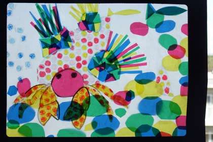 図工「光のさしこむ絵」の制作に入りました。日の光が通ることで、色がさらに輝いて見えます。これからの作品づくりがとても楽しみです。