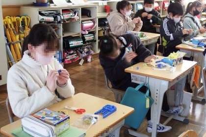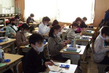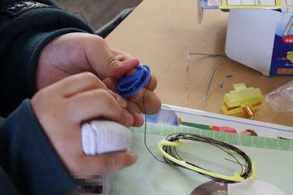 電磁石の学習の発展として、コイルモーターを作りました。電磁石はコイルのまき数で強さが変わってきます。ロボットや携帯電話、リニアモーターカーにも使われていることを知りました。