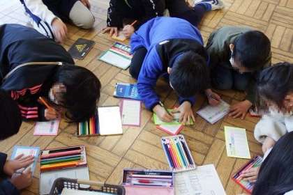 今日のなかよし集会は、6年生へのプレゼントづくりです。なかよし集会でお世話になった6年生の顔を思い浮かべながら、手紙やカレンダーを作りました。5年生が、とりまとめのための指示を出したり、準備をしたりしてくれました。素敵な6年生になれそうです。