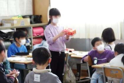 「はこの形」の学習で、身のまわりにあるいろいろな箱について学習しました。横から見たり、上から見たりすると正方形や長方形、いろいろな形が見えることに気が付きます。