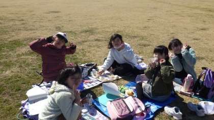 碧南臨海公園では、お弁当を食べました。美味しいお弁当の笑顔でほおばる子どもたちの姿がとても印象的でした。食べ終わった後は、みんなで遊びます。クラスの友達とこうして遊べるのも、あと1か月です。