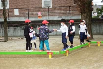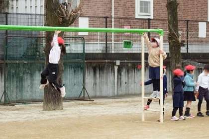 新しい遊具が設置されました。早速、きらきらタイムやおおぞらタイムに子どもたちが遊んでいます。新しいブランコやジャングルジム、鉄棒、うんてい等、子どもたちなりに工夫しながら楽しんでいます。