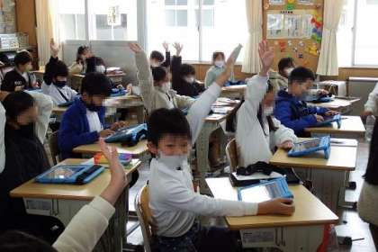 「What's this? これは何?」英語を使ってクイズ大会を行います。上手にヒントを使いながら問題を出題します。写真の食べ物は何でしょう?答えは、かぼちゃです。