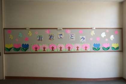 卒業式に向けて、各学年で取り組んできた掲示物が完成してきました。一人一人が思いをこめて作り上げた作品です。6年生に、卒業への思いを高めてもらいたいです。