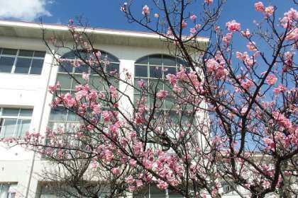 職員室の前のピンク色の梅の花が満開です。子どもたちが登校してくるのを、出迎えてくれているようです。春が近づいてきているのを感じます。