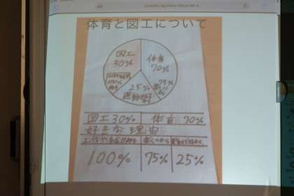 国語「調べたことをほうこくしよう」アンケートをとって調べた内容を結果としてまとめ、報告会を行いました。聞き手に分かりやすいように表やグラフにまとめ、話の組み立てを工夫しました。