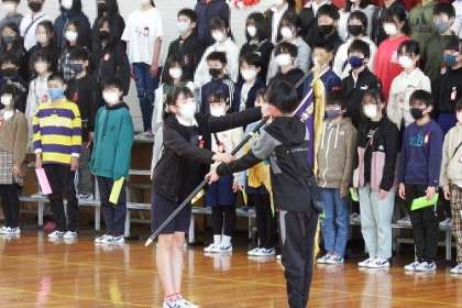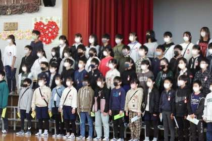 「6年生を送る会」を行いました。各学年の子どもたちがこの日のために一生懸命準備を進めてきました。5年生は、クイズを行いました。6年生が今までにお世話になった先生からのメッセージも入れながらクイズを進行し、5年生が作ったプレゼント(タブレット用のネームプレート)を贈ることもできました。校旗の引継ぎでは、6年生から5年生へ最高学年のバトンが渡されました。5つの学年との送る会すべてで、6年生が会を盛り上げてくれ、とても温かい時間をもつことができました。各学年で6年生が歌ってくれた歌が、全校児童の心に響いているはずです。