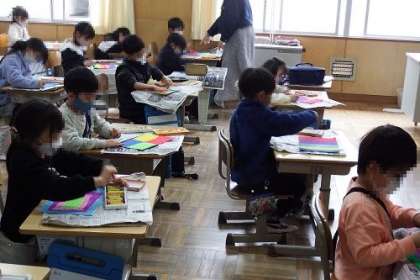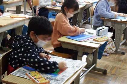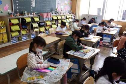 図工でスクラッチに挑戦しました。こすると浮き出てくるように、クレヨンを重ねていきます。何が飛び出してくるのか、子どもたちの興味をそそります。