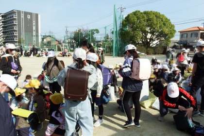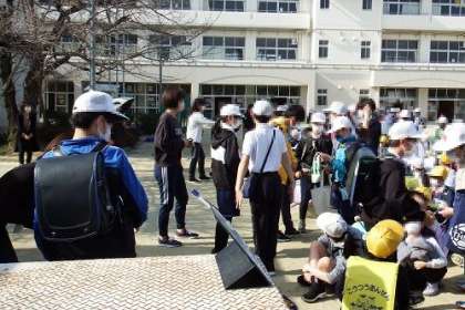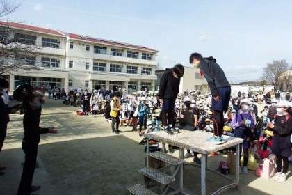 通学班の引継ぎ式を行いました。6年生から5年生へなどが送られました。6年生が一年間行った班のとりまとめを、きっと来年は5年生を中心とした新しい班長さん、副班長さんがしっかりと行ってくれるはずです。