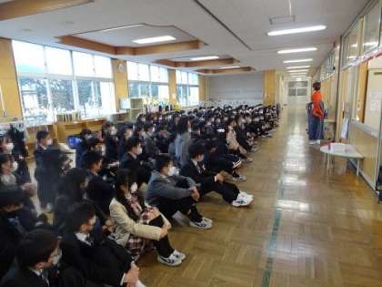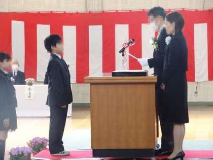 体育館に入場し、卒業式が始まります。ピンと張りつめた空気の中、国歌斉唱に続き、卒業証書授与が行われました。
