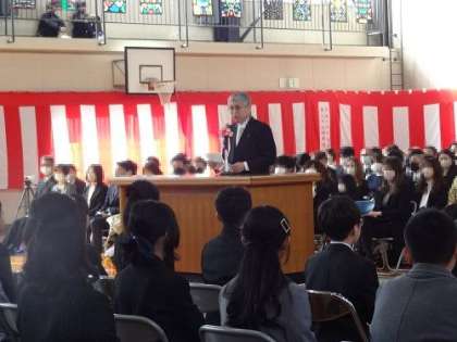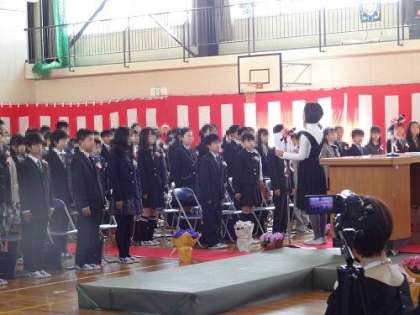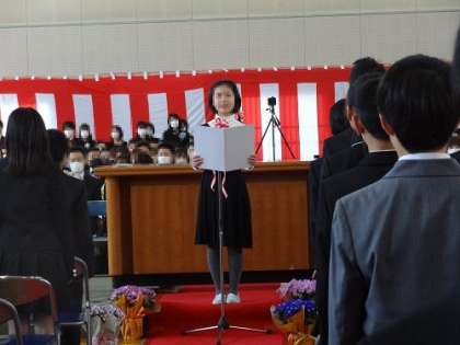 来賓の方のお話にも一生懸命耳を傾けます。在校生代表の送る言葉には、6年生との思い出や感謝の思いが・・・。素晴らしい送る言葉でした。