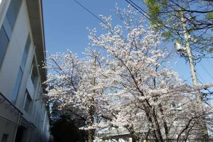 南棟の横の桜、美山の塔の前の桜、校舎北側の桜、みんなきれいに咲いています。