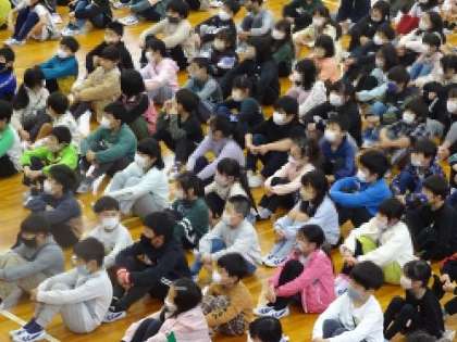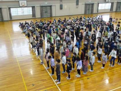 令和5年度の始業式を行いました。2・3年生と4・5・6年生の2部k形式で実施しました。みんな1つ上の学年に進級し、やる気に満ちた態度で参加できました。写真は、2・3年生の始業式の様子です。