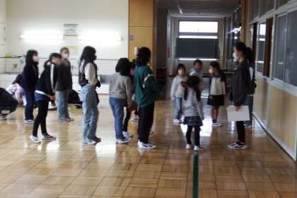 本年度初めての通学団会を実施しました。新しい通学班での登校が今日から始まっています。並び方や集合場所、気をつけることなどを確認しました。仲良く安全に登校しましょう。