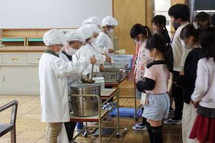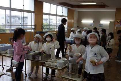 2年生〜6年生は、早速今日から給食開始です。給食の準備もお手の物。スムーズで配膳を終えることができました。今までの経験が生きていますね。