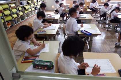 1年生は、初めて出会う友達がいっぱいです。お互いのことを知るために、「よろしくね」の気持ちをこめて、名刺(カード)をつくりました。自分の名前の他に、好きな食べ物や動物も書き込みました。