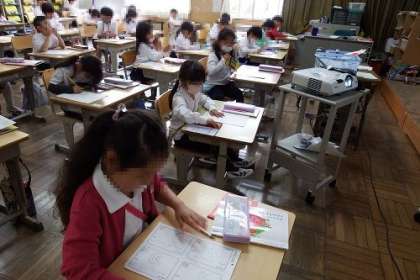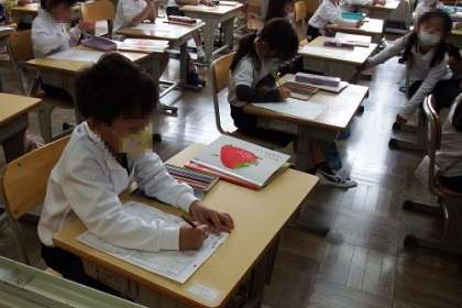 1年生は、初めて出会う友達がいっぱいです。お互いのことを知るために、「よろしくね」の気持ちをこめて、名刺(カード)をつくりました。自分の名前の他に、好きな食べ物や動物も書き込みました。