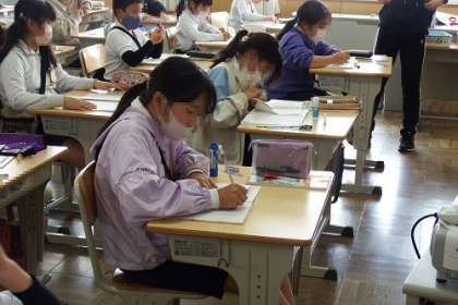1日の気温の変化を、折れ線グラフにあらわす学習を行いました。縦の軸と横の軸に気をつけて、気温をあらわす点を書き込むことから始めました。