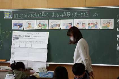 家庭科の学習で、自分の一日の生活を記録し、振り返ってみました。そうすると、自分の生活の課題が見えてきます。睡眠時間は大丈夫?テレビの見すぎは?朝は自分で起きられるかな?