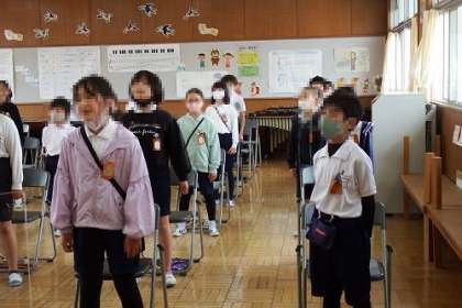2年生の子どもたちが教室巡りをしている時に、4年生が音楽室で合唱練習に取り組んでいました。素敵な歌声を届けられました。