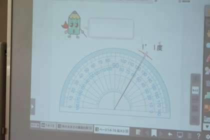 今日は角の大きさを比べるために、分度器を使いました。分度器は、その中心を角の頂点にあわせることではかることができます。辺と0度の線をあわせることも大切です。