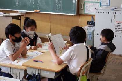 国語「こわれた千の楽器」は、音読について学ぶ単元です。今日は、音読したい場面を決めて、グループで音読の練習をしました。よりよい音読になるように、お互いにアドバイスしあいながら・・・。