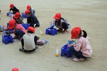 生活科の学習でアサガオを育てていきます。その準備を始めました。写真は、土づくりの様子です。自分の鉢に一生懸命に土を入れました。これから種を植えていきます。