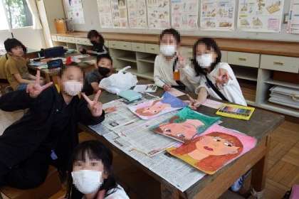 図工で取り組んできた自画像が完成しました。それぞれ特徴をよくとらえた素敵な自画像になりました。