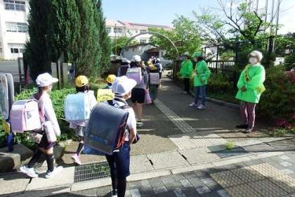 ゴールデンウイークが明けた初日、民生委員の皆様に、一声運動を行っていただきました。5日ぶりに登校してきた子どもたちの「おはようございます」の声かけ。子どもたちがからは元気な声が返ってきました。