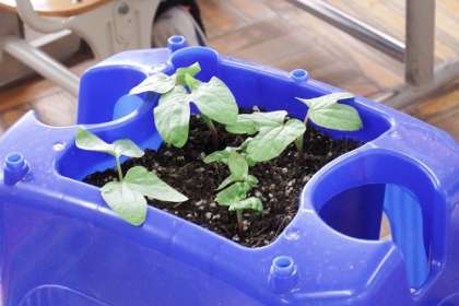生活科で育てるアサガオ。子どもたちの鉢に芽がでてきました。色や大きさ、形、数など観察をしっかり行います。毎日水をやって、大きく育ってほしいです。