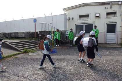 先週金曜日に育友会の皆様にあいさつ運動を行っていただきました。子どもたちから元気な声がかえってくる度に笑顔になります。朝の気持ちのよいスタートです。ありがとうございました。