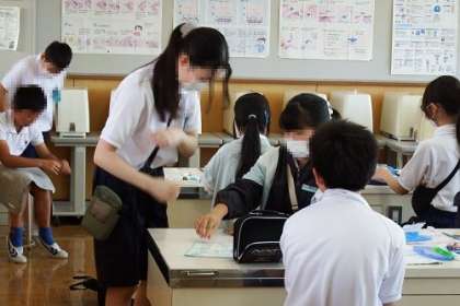 家庭科でナップサック作りに入りました。まだ、スタートしたところですが、みんな集中して作業に取り組んでいます。すぐにでも使えるナップ、丈夫なナップを作りたいです。