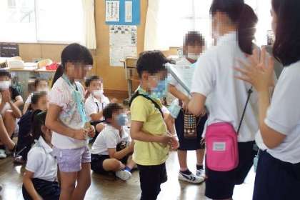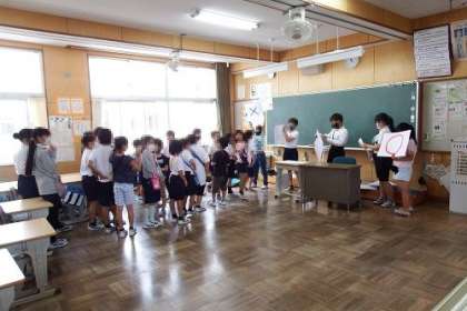 本年度第1回のなかよし集会を行いました。1年生から6年生までなかよしグループを作りゲームで遊ぶなど楽しく過ごします。今日は、新しく入学した1年生に、歓迎の意味をこめて、6年生がつくったメダルをプレゼントしました。