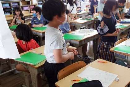 今日の課題は、「やさしさ」とは何だろう?子どもたちは、難しい課題に対して一生懸命に考え、話し合っていました。「やさしくすべき人は誰?」たくさんの意見に黒板が埋まっていました。