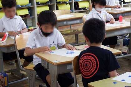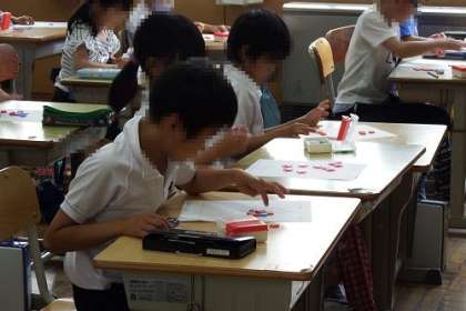 算数「いくつといくつ」の学習で、「おはじきいれ」にチャレンジしました。入った数と入らなかった数を数えると、いくつといくつの分けることができます。楽しみながら学習に取り組むことができました。