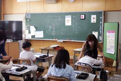 今日は、「小」の文字を使って、「はね」と「点」の書き方を学習しました。始筆や終筆、姿勢など基本を確認しながら進めました。