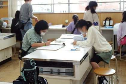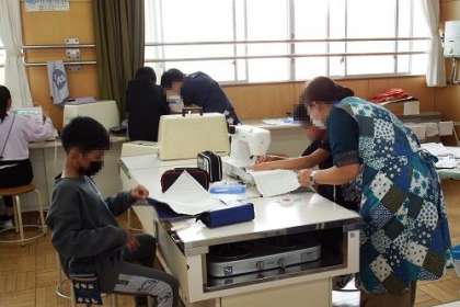 家庭科で取り組んでいるナップザックつくりもかなり進んできました。ミシンの使い方も慣れてきたようです。完成に向けてゴールが見えてくると、ますます集中力も増してくるようです。