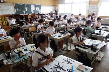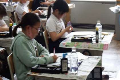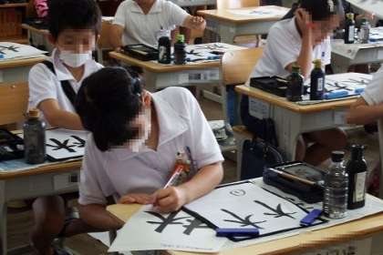 毛筆で「林」の学習に取り組みました。特に気をつけなければいけないところを、お手本に書き込みます。一画一画注意点に気をつけながら、練習を繰り返しました。