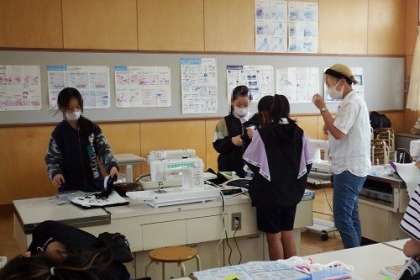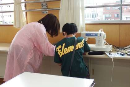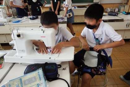 家庭科で学習しているナップザック、完成が近づいてきました。最終的な形が見えてきて、子どもたちのやる気もさらに増しています。