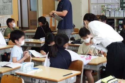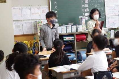 教育実習の先生の研究授業が行われました。単元は、算数「小数のわり算」です。小数のわり算を行うときに出る余りの大きさについて考えました。余りの小数点の位置は、わられる数のもとの小数点と同じところであることが分かりました。