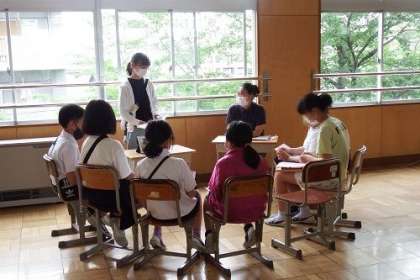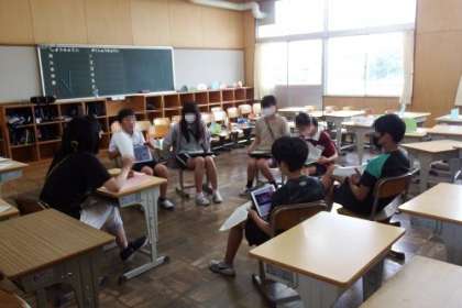今日の英語の課題は、「日常生活や宝物を伝えよう」です。I live in 〜 in Japan.I go to Miyama Elementary School.I usually 〜 on 〜 .My treasure is 〜 .グループ内で、お互いの宝物について聞き合いました。