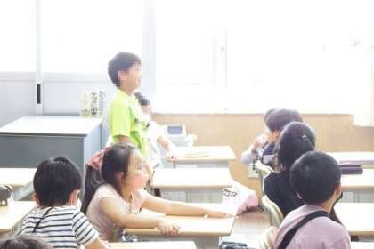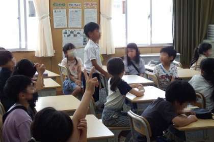 資料「三びきは友だち」を使って、道徳の授業を行いました。ぴょんたとわんた、ぽんきちの3人がすもうで遊んできました。その時、くまおじさんが大切にしている花壇に倒れてしまいました。ぴょんたは、「ほんきちさんがやりました」と言います。さて・・・。公正、社会正義について考えました。
