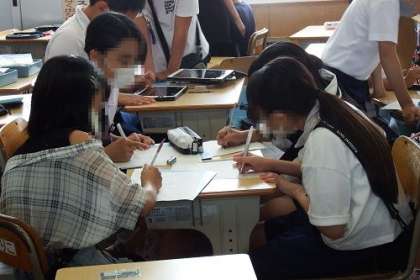 写真は、学級でSSP(シャイニング スマイル プロジェクト)の計画を立てている様子です。みんなが輝き笑顔になれるような取組を行いたい。どんな活動ができるのか、本当に楽しみです。考える子どもたちも嬉しそう。