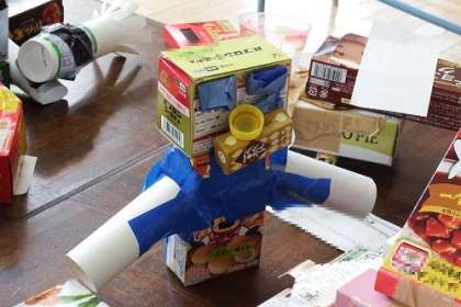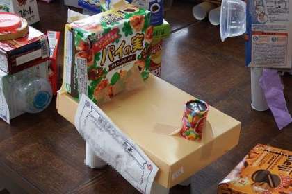1年生が図工「はこでつくったよ」で作った作品が広場に展示されています。子どもたちがつくった力作がいっぱいです。作品一つ一つに子どもたちの思いがつまっています。