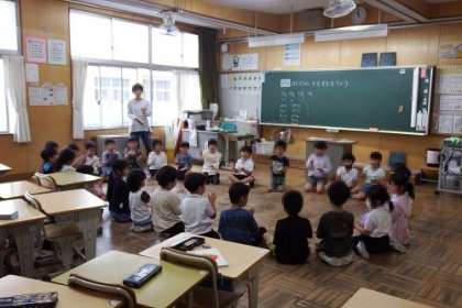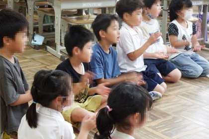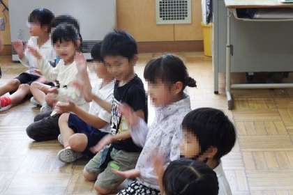音楽「はくにのって りずむをうとう」を学習しました。「たん たん たん うん」のリズムに果物の歌詞をつけて、手を打ちます。輪になってみんなで楽しく学習を行うことができました。