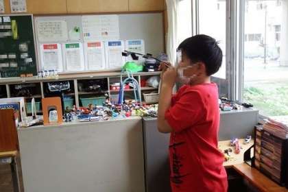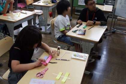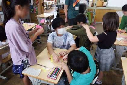 図工でストロー飛行機を制作しました。題して「ふいて とばして ストローひこうきをつくろう」です。長さの違うストローを使って、紙飛行機をつくりました。息を吹き込むと・・・飛行機が勢いよく飛んでいきます。