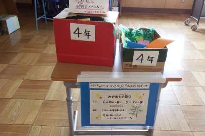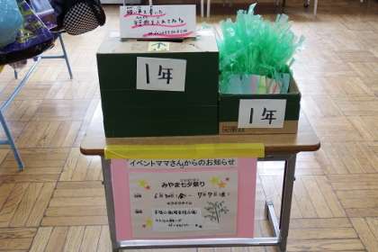 プチボラみやま隊の皆様が、七夕に向けて準備をしていただいています。下駄箱の七夕コーナーに飾る短冊の募集が始まりました。各広場に設置してある用紙に願いを書き込んで投函します。「夢がかなうといいな」願いをこめて。