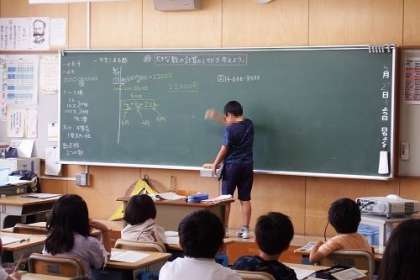 算数「一万をこえる数」で、大きな数のたし算とひき算にチャレンジしました。位に気をつけながらたし算やひき算を行わなければいけないことに気づきました。
