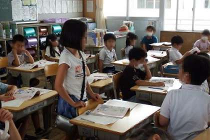 「あぶないよ」シンプルな4コマ漫画の教材を使って、道徳の学習を行いました。自分の身を自分で守る、危険な目にあわないようにすることについて話し合いました。