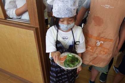 5年生が家庭科で、「ゆで野菜サラダ作り」に挑戦しました。にんじんやブロッコリーなど、上手にゆであげました。とてもおいしくいただきました。ありがとう。